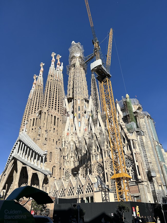 ガウディ没後100年の今年2026年に高さ172.5メートルの【キリストの塔】が完成するといわれているサグラダファミリア。写真向かって左側は【受難のファサード】向かって右側が現在も建設中の【栄光のファサード】完成すれば正式な大聖堂の入場口となります。